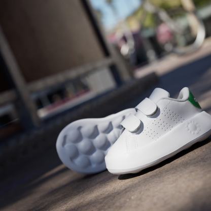 Whether it's playtime at the park or family visits, these infants' adidas Advantage shoes ensure tiny feet stay comfortable all day. The hook-and-loop straps make slipping these lightweight shoes on and off a breeze for both little ones and parents. A one-piece EVA combined bubble midsole and outsole cushions each step, while the recycled synthetic upper adds durability and style. This product features at least 20% recycled materials. By reusing materials that have already been created, we help to reduce waste and our reliance on finite resources and reduce the footprint of the products we make.