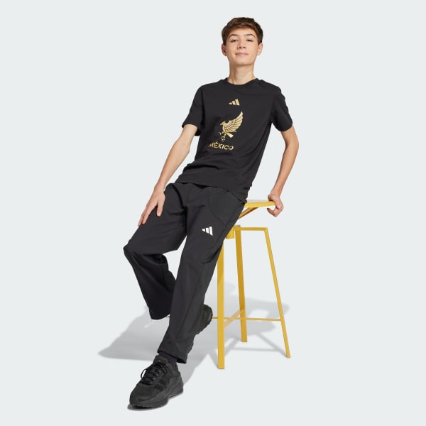 This juniors' soccer tee belongs to a special adidas Mexico collection headlined by an eye-catching match kit. Showing off a bold, gold team badge on the chest, it's perfect for cheering on your side during their biggest games. Comfortable single jersey fabric will ensure it's your go-to on non-match days too.