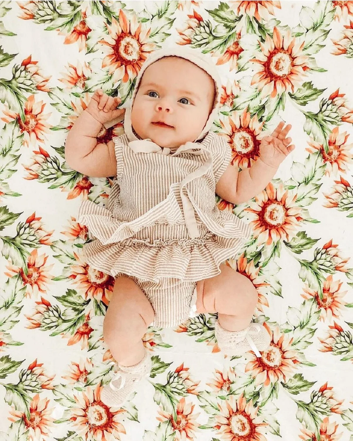 Our rompers are made of cotton blend. The material is soft, breathable linen fabric and makes your baby feel comfortable.
