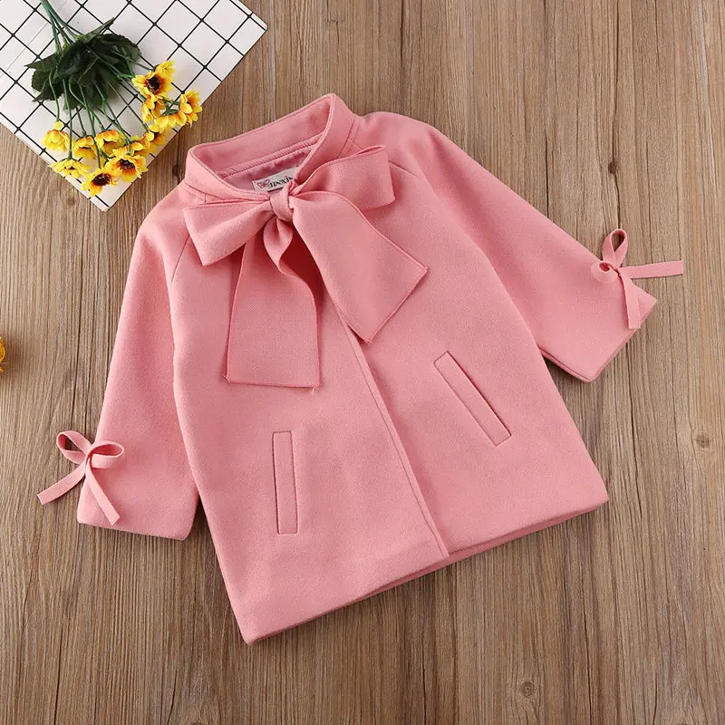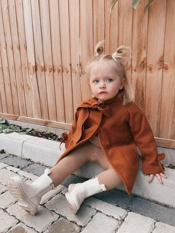 Get your little fashionista a dose of Paris Fashion week with our Girls Overcoat Woolen Bowknot!