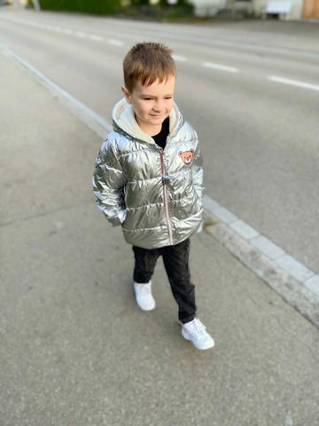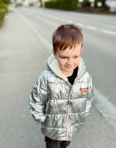 Keep your kids toasty warm and look stylish in a shimmering metallic style winter hooded padded jacket. Featuring hood and closure zip on the front. It is made from thick and soft fabric which is perfect for winters. A hooded puffer jacket to keep your little cozy and warm from breezy days.