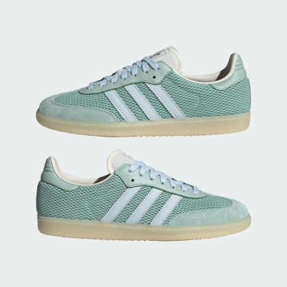 One of the truest representations ever of the iconic Trefoil, the adidas Samba OG has been kicking its way through the decades. A longtime staple of streetwear style, this version tweaks the authentic design of the original with a mesh-like leather upper that's both fresh and familiar. It's smoothly lined with textile and leather, making every wear a delight. Classic Samba details include the T-toe overlay, stitched heel tab and a wide, thin tongue that puts a layer of comfort over the top of your foot. Make this one your own, pairing it with everything from jeans or joggers to cargo shorts or even a pair of trousers.