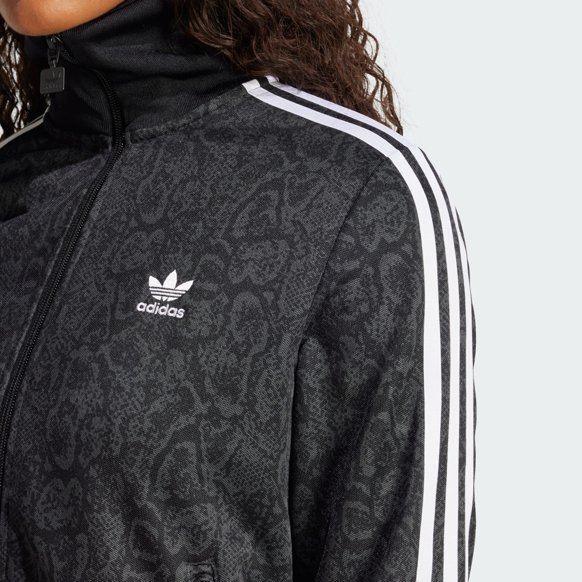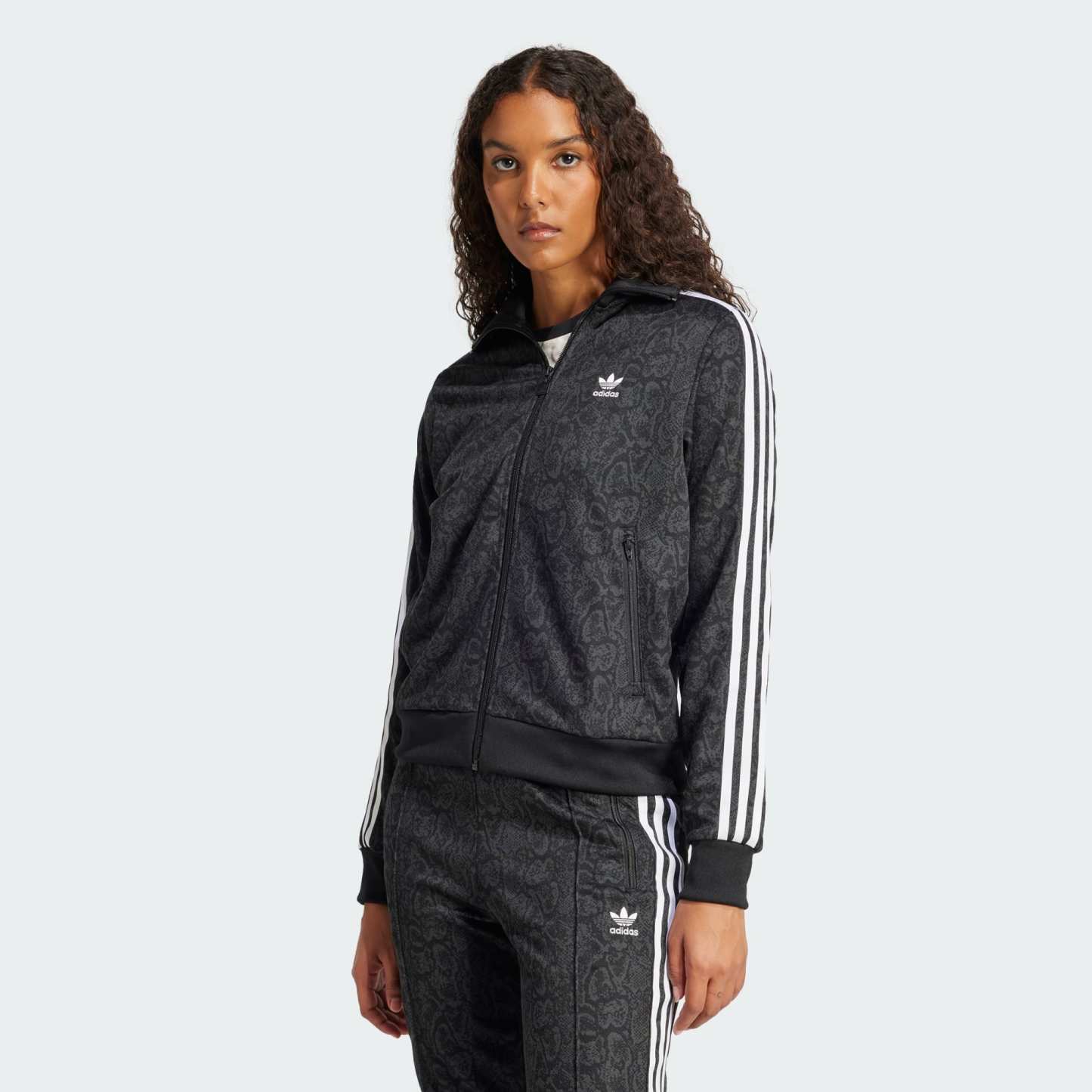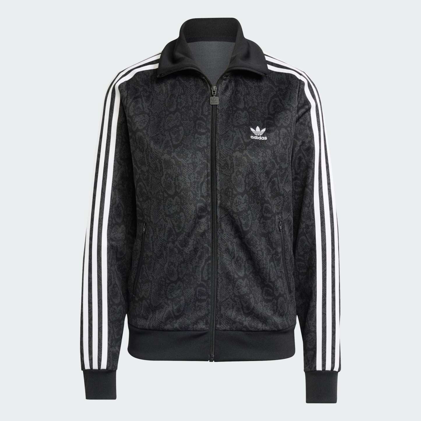 This adidas track top was made for days when you want to look as good as you feel. Ribbed cuffs and a bomber collar give it a sporty vibe, while snake-print detailing adds an element of surprise. Zip pockets provide a spot for your phone or keys so you can head out hands-free. Made from soft piqu茅 fabric, the jacket just keeps getting more comfortable.