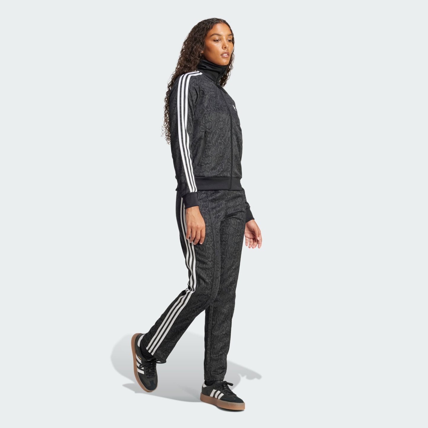 A classic track jacket with a subtle snakeskin pattern.