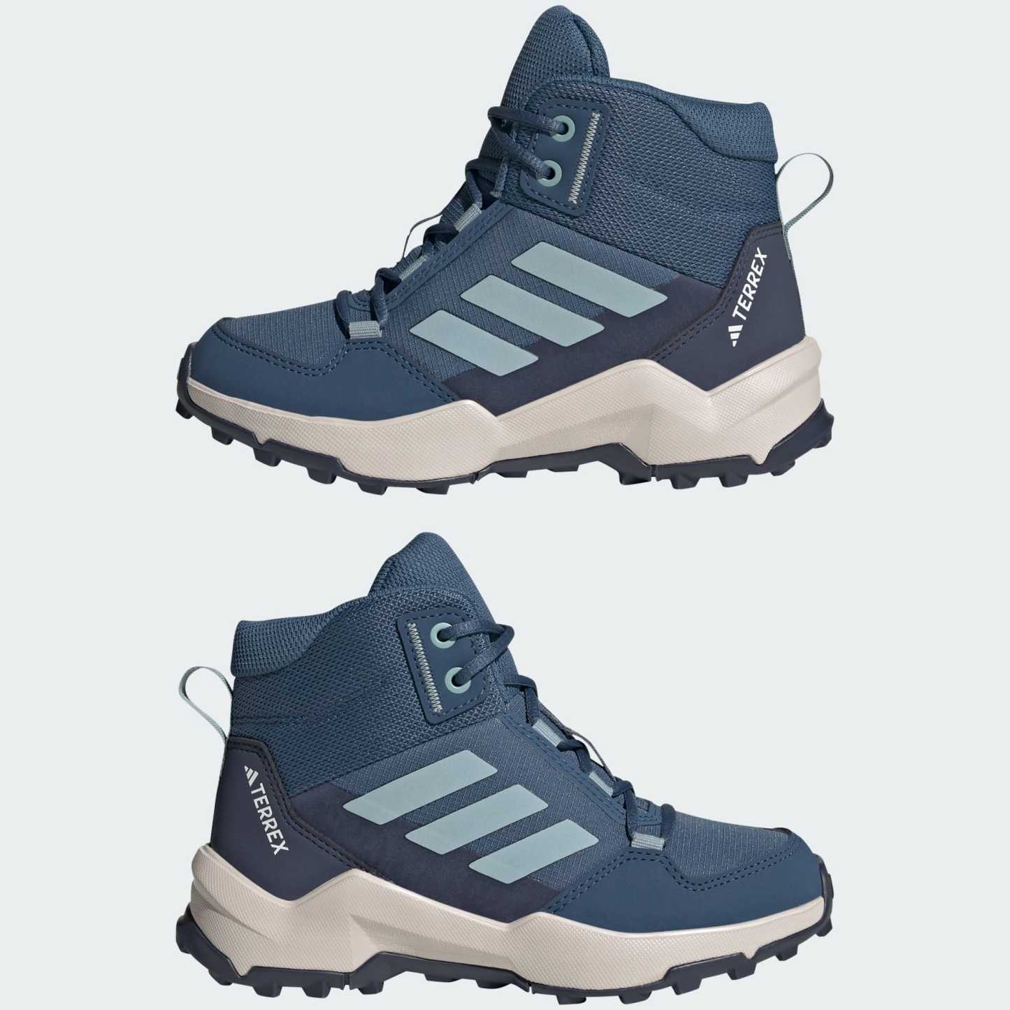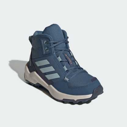 Kids are always up for adventure. Make sure they're ready to tackle the trails and explore the park with these adidas Terrex hiking shoes. Built to balance protection, comfort and grip, they are the versatile hiking shoes kids can wear to explore near and far. The mid-cut height offers added ankle coverage and seals out dust and debris, while a cushioned midsole keeps fast-moving feet feeling good all day. A grippy Traxion outsole maintains confident footing for scrambling over loose rocks and uneven trails. The Adifit insole measuring tool ensures the right fit so they can stay outside longer and explore more.This product features at least 20% recycled materials. By reusing materials that have already been created, we help to reduce waste and our reliance on finite resources and reduce the footprint of the products we make.