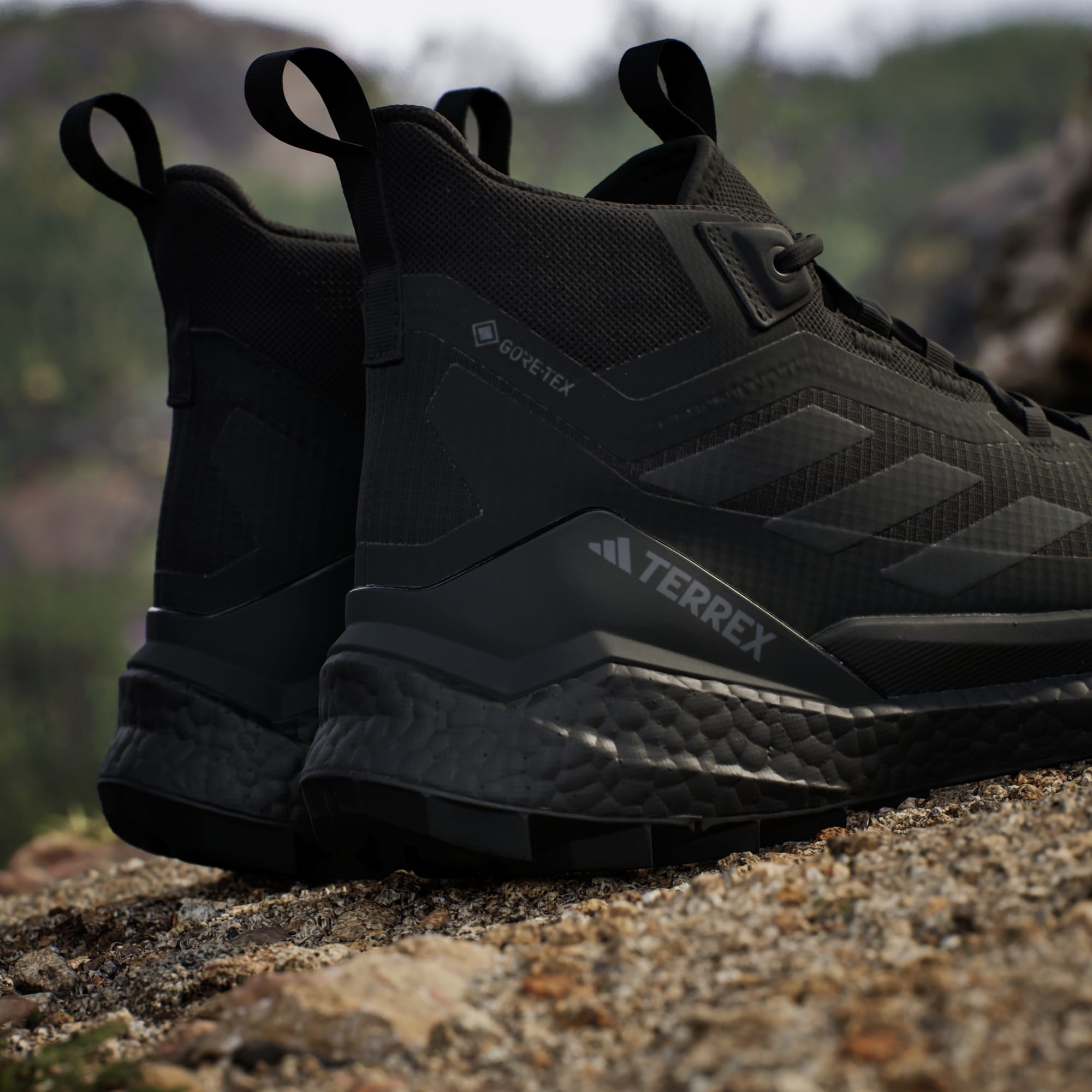 Hike further. Explore more. Enjoy the view. From thru-hikes to weekend explorations, these lightweight hiking shoes offer next-level comfort and support to extend your range in the mountains. A BOOST midsole brings energy to every step to keep you moving on hikes long and short. A GORE-TEX membrane seals out wet conditions while letting your feet breathe as they warm up. The soft, supportive upper and gusseted tongue hug your foot with form-fitting comfort that seals out debris and lets you hike longer. An internal frame and heel support add the stability to move with confidence over rocky terrain and uneven ground, and the Continental邃「 Rubber outsole maintains confident traction whether it's wet or dry.By choosing recycled, we are able to reuse materials that have already been created, which helps to reduce waste. Renewable materials choices will help us to remove our reliance on finite resources. Our products made with a blend of recycled and renewable materials feature at least 20% total of these materials.