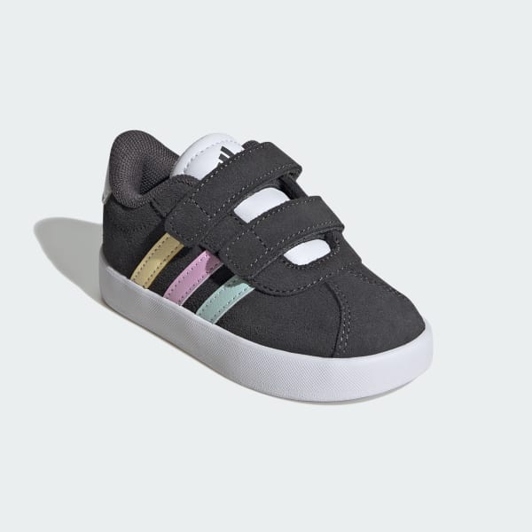Adventure ready. These infant's adidas shoes have adjustable hook-and-loop straps so you can get them on and off in a flash, perfect for feet that don't want to stop moving. A synthetic upper, textile lining and vulcanized rubber outsole come together to keep their feet comfortable whether they're learning to stand, cruise or play.